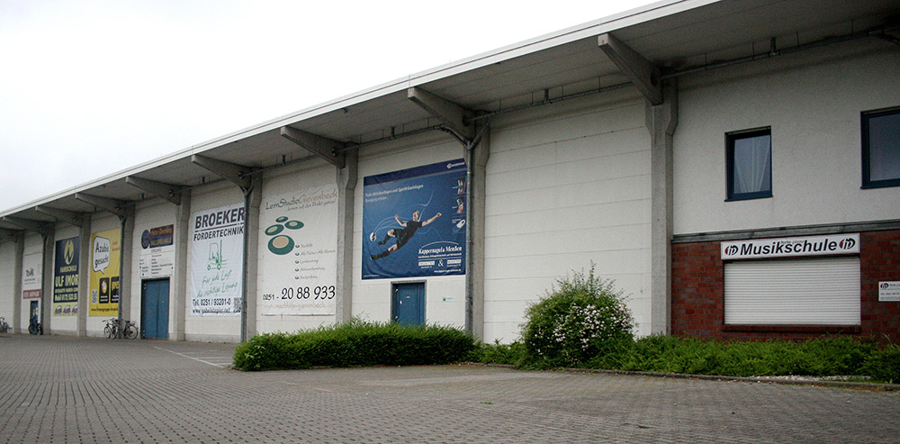 2.0€ Mio. Freianlage | GEBÄUDE mit Halle auf Erbbaurecht des 1.FC Gievenbeck 1949 e.V. 3.0€ Mio. Der städt. Zuschuss lag bei 3.8€ Mio. Dazu kamen 0.6€ Mio. aus Marketing und sonstigen Maßnahmen.